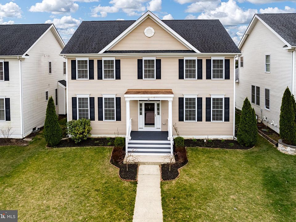 NORTH FACING. Have you ever had a long day and just wanted to get home and relax? Traditions at Chesterfield. This warm and friendly community is surrounded by plush green forests with walking paths and ponds throughout. Set on a premium lot, this North facing 4 bed, 2.5 bath smart home checks all of the boxes on your dream home list! Covered front porch with broad Trex decking planks is the perfect setting for your seasonal decor. Step inside the 2 story foyer with crown molding and lustrous light vinyl flooring. On the right side is a sizable formal sitting room that is filled with an abundance of warm natural light, the ideal spot for entertaining a comfortable sized crowd. Conveniently tucked away off of the foyer is the half bath. And on the opposite side of the foyer is a grand formal dining room adorned with crown molding, chair rail and a passageway, sizable enough for an amazing future butlers pantry, leading directly into the kitchen. If you are one of those people who believes that the kitchen is the heart of the home, you are going to be highly impressed by the massive eat-in kitchen! You will never complain about a lack of counter and cabinet space! This kitchen has plenty! The massive center island will have you fantasizing about hosting the largest buffet dinner party OR creating the largest Charcuterie that would be worthy of a Guinness World Record. You will not get frustrated looking for your serving dishes that are buried deep in the lower cabinets because they have sliding pull outs. Other features of the kitchen include gleaming granite countertops, marble backsplash, 42” cabinets with voice activated under lighting, garbage disposal and a stainless steel appliance package including a Samsung refrigerator. Get comfortable in the open family room with multiple windows allowing the most glorious warm natural light in. During the evenings, turn on the gas fireplace and say out loud, “Google, dim the lights.” Viola, the perfect ambiance for cuddling on the couch and binge watching a good series. All of the LED recessed lights in the home are on a voice activated Smart Dimmer via a Google app. Your streaming will not be interrupted because the entire house is wired with CAT5 cabling. So if you work from home and you have kids that will be home off school this summer. Your wifi isn’t going to drag with everyone on their devices! Just as important, is a good sound system. This home is wired with a 2-tier central audio, 7.2 point channel stereo sound system. Keep your receiver and equipment all in one spot in the basement and access it all with an app. Speaking of the basement, as you can suspect, it is set up for the perfect theater room. The current speakers and projector are negotiable in the sale. This finished basement has ample, unobstructed space for an extraordinary rec space. Nearly half of the basement is dedicated to storage space as well as the 2 zone HVAC system that includes a whole house Aprilaire humidifier on the furnace and a tankless water heater. Back to the first floor, off of the family room is access to the 2 car garage which includes an EV charger hookup and wifi enabled garage doors, as well as access to the backyard and driveway with motion sensored lights. Feel safe knowing that the alleyway behind home is private and if you choose to set up a basketball hoop, those playing will be safe. There is a 5 zone (wifi enabled) sprinkler irrigation system throughout the landscape. The backyard is extremely manageable yet productive with a producing fig tree, blueberry bushes and strawberry plants that line the one side of the home. Now, you have to be thinking, “Could this property get any better?!” The answer…. Yes, it does! Have you ever had a single digit electric bill? Or get a check from the electric company? Well, you will if you live here! On the roof are 21, 7KW, OWNED Panasonic Solar Panels. Each panel is 330W and wifi enabled. Convenient access to major hwys.