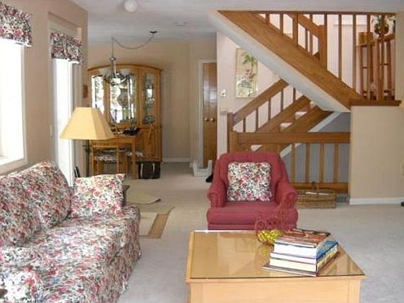 Beautiful 3 level townhouse in private location. New neutral carpeting thru out. 2 King size Bedrooms. 1 car garage. Whirlpool tub shower combo. Large kitchen with peninsula. Large area of counter space. Living room with fireplace. Lower level family room/office .Furnace and a/c newer. Included: WD, refrig, bar stools, plant stand on stair landing, gas log and screen in fireplace. Great location!!
