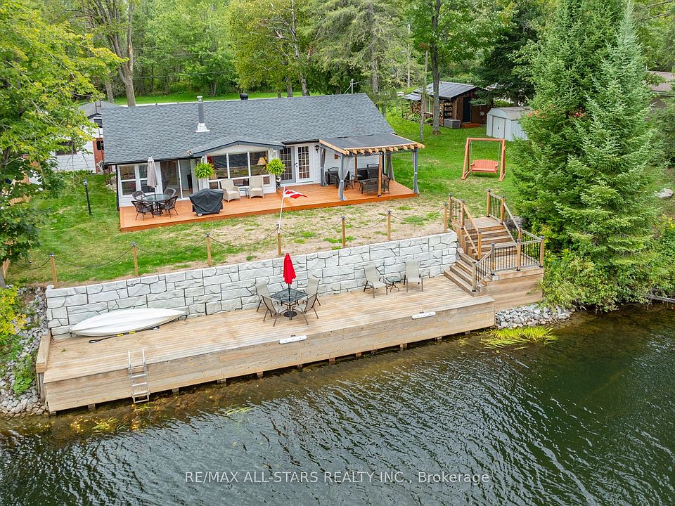 Welcome Home Live ,Where Others Vacation! Nestled along the Burnt River, this four-season home invites you to experience everyday comfort with a vacation-like feel. Featuring three bedrooms, an open-concept living, dining, and kitchen area, plus the cozy warmth of wood finishes throughout, this home radiates charm and relaxation. Enjoy the natural light in your sunroom, or step out to the expansive deck overlooking the water. Two versatile Bunkies offer bonus space ,one overlooking the water for guests, the other ready to adapt to your needs. With high-speed fibre optic internet, the property also provides the versatility to comfortably work from home while enjoying cottage life. At the shoreline, a stunning new retaining wall frames the waterfront beautifully, complete with a dock that accommodates two large boats. After a day on the water, gather with friends and family around the landscaped fire pit, the perfect setting for starlit evenings and cozy conversations. Set on a very large lot, the property also includes a two-car detached garage and comes fully furnished and tastefully decorated, so you can move right in. Burnt River is part of the renowned Trent-Severn Waterway, offering endless miles of boating, fishing, and exploration. Just minutes to all amenities, this property gives you the rare opportunity to live where people vacation.
