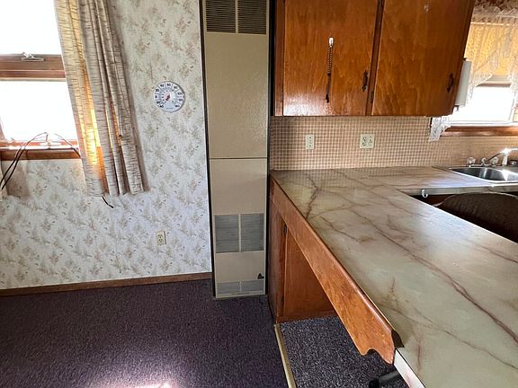 Cute little 2 bedroom 1- 3/4 bath bungalow with attached one car garage. New gas stover. On a slab, fenced yard, vinyl siding, newer windows, metal roof. Needs updated flooring and your own paint, otherwise cute as a button.