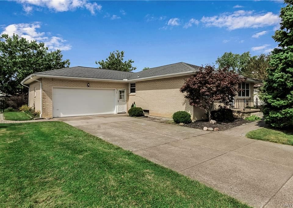 All BRICK RANCH in a quiet subdivision in West Seneca. Featuring 3 Bedrooms, gleaming hardwood floor in living room with gas fireplace great for fall and winter nights. Open concept formal dining room. great for entertaining family and friends. Lovely eat in kitchen with build in microwave, cooktop and wall oven. 2.5 car attached garage with kitchenette access to an amazing 20'x9' 3 season/sunroom with two sliding glass door & fully fenced backyard with shed. Makes for great outdoor indoor entertaining. All new windows throughout, Central Air, Nice full poured concrete basement. Now your chance for one story lifestyle on a low traffic street.