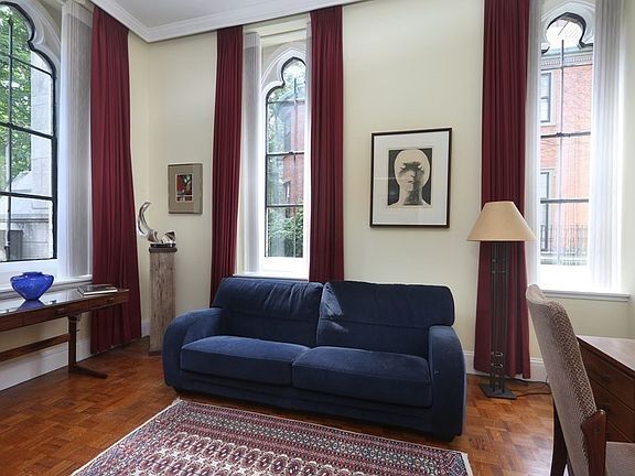 RARE FIND. Spectacular south facing 2 BEDROOM + LARGE STUDY(could be used as 3rd bedroom) residence in one of the most iconic buildings,The former Seminary School on Beacon Hill. This second floor residence with 14/ft ceilings and massive Palladian windows is an architectural showcase with large sun-drenched living room and a fireplace that opens into a large study that could easily be used as a 3rd bedroom. A separate formal dining area, large eat-in kitchen with an island. Laundry in the unit, Gorgeous common roof deck with breathtaking views of the Charles River, Cambridge and Boston. Beautifully landscaped common courtyard , Live-in Superintendent, Bike room , Gym and additional storage.