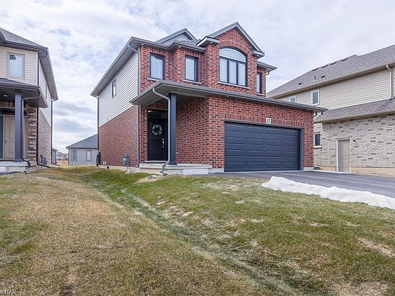 Located in Rolling Meadows, a flourishing community equipped with a large playground, soccer fields and walking trails. Tucked away on a quiet cul-de sac, this 3 bedroom, 3 bathroom home is a show stopper. The full brick front exterior, featuring black windows makes this home stand out from the rest. Upon entering, your focal point is the striking oak staircase. The bright great room with pot lights features hardwood floors and a beautiful fireplace. This home is perfect for entertaining. A clean, classic kitchen with a subway tile backsplash, quartz countertops, pantry and contrasting island. Sliding doors from your dining area lead to your massive concrete patio. The second level boasts three large bedrooms. The primary bedroom has a large walk-in closet and ensuite bathroom. Two other bedrooms have a shared 3 piece bathroom, one bedroom with another walk-in closet. Laundry conveniently located on second level. California shutters and Mandalay blinds throughout.