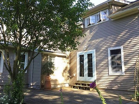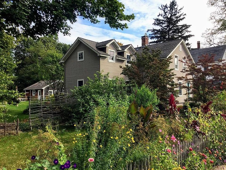 Turn of the century farmhouse on stunning, large lot just steps from Easthampton's Cultural District. Home to 2 professional artists, unique details throughout. Large rooms, elegantly decorated, an abundance of natural light. Some original features including restored staircase and solid wood doors. Second level hallway, leading to three bedrooms and large full bath, features beautiful storage cupboards and exquisite English wallpaper. Cozy den leads to a bright formal living room with french doors opening to a spacious deck. Ground floor includes large country kitchen, pantry and laundry room, formal dining room with hardwood floor, sunny, south-facing study/office, and a large side porch from the kitchen opens onto drive. English-style gardens (by English gardener!) with paths, trellis work and arbors, plus many other original landscaping features. Fenced in yard. Shingled studio/workshop (25 x 25 ft) detached from house. Fully insulated with modern plumbing and own 100amp box.