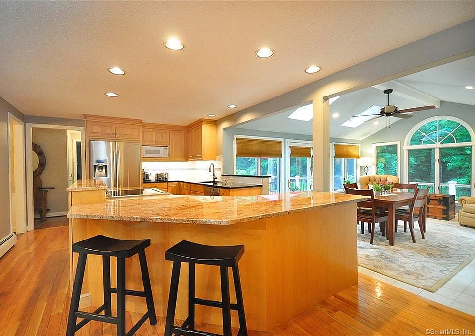 Turn key Colonial on a beautiful lot in sought-after Squadron Line neighborhood. Beautifully remodeled kitchen opens to family room and gorgeous sunroom--perfect space for entertaining and relaxing. Family room boasts newer propane fireplace, custom fireplace surround, and beautiful built-ins. Sunroom has French doors offering access to the large, wrap-around deck (completely rebuilt and expanded in 2014 with Kleer Decking overlooking the private backyard AND has radiant-heated floors for extra warmth during the colder New England months. The main level also boasts a good-size formal dining room, a spacious living room with wood-burning fireplace, a separate laundry room, and a remodeled 1/2 bath. Upstairs are 4 bedrooms, including a master bedroom with walk-in closet with built-ins and a full en-suite bath. The lower level has a new drop ceiling, vinyl plank flooring, and offers additional recreation/workout/office space. Features/Upgrades include the following: whole house generator, water pressure booster, firepit area, gorgeous hardwood floors in most rooms, newer roof, lawn irrigation system, Kleer Decking, remodeled kitchen and family room, central air (upstairs and partial main level, oversized garage with separate storage/shed area, amazing neighborhood setting, PUBLIC WATER AND SEWER and so much more