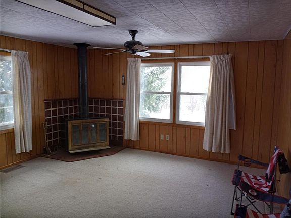 A unique home in the country with mountain views! On 5 acres with lots of trees and some apples too, and room for a couple of horses. This smaller home is total of 3-bedroom, 2-bath. It has a full basement with a family room and 1 bedroom and a full bath. Plus a shop area. Its only over 3 miles from town, with unlimited possibilities to expand. There is a small outbuilding too.