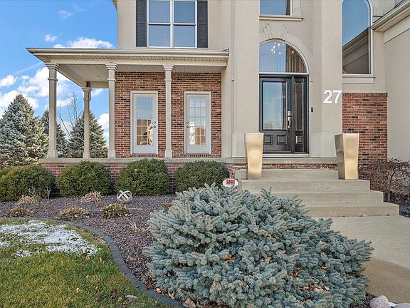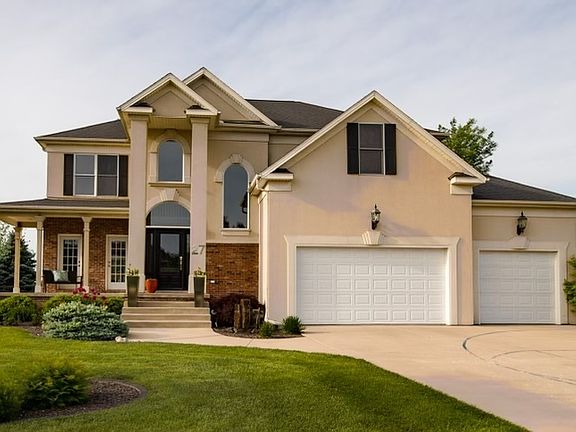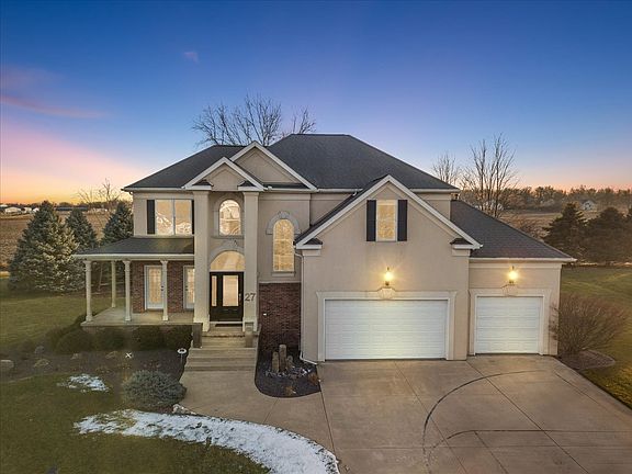 Welcome to this Stunning 5 bedroom, 4 1/2 bath home situated on a half acre in Cloverhill Subdivision with no backyard neighbors. The grand, open foyer sets the stage for the luxury found as you turn each corner. This DREAM KITCHEN is the true heart of the home, with an eat-in nook, high end stainless steel appliances, custom cabinets, quartz countertops, tiled backsplash and under mount sink. Hardwood floors start in the Living Room for this open floor plan, which flows into the Office, tile in the kitchen then wood flooring in the family room as well as crown molding throughout. The Living Room has two doors that lead to the front wrap around porch and the Office includes custom cabinets, desk, under cabinet lighting and a tiled backsplash. Large, southern-exposure windows provide ample lighting throughout the main level. Relax in the Family Room, reading in front of the maintenance-free gas fireplace, or watching television with the family. Follow the grand staircase to the second level, where you'll find four Bedrooms and the Laundry. Two large Bedrooms, with custom closets from S.O.S., are on the East side and share a full Bathroom. The third Bedroom, on the West side, features an en suite, custom closet from S.O.S., and a Bonus Room. The spacious Primary Suite features a lighted tray ceiling, and large, custom California closet. The Primary Bathroom is complete with a jetted tub, custom-tiled dual shower head European shower, double-sink vanity and a private water closet. The walk-out Basement provides additional indoor entertainment and a well-organized storage room. A full wet bar, with wine fridge and sub zero freezer is the perfect place to start the fun. Enjoy the Theater room with projector, retractable screen and surround sound for movies, big games or favorite shows. The Basement includes a fifth Bedroom with ground level windows, separate custom closet space, and full Bathroom. A sizable, low-maintenance Trek deck offers the perfect place to star gaze and take in the spectacular views of sunrises and sunsets. On cloudy days, feel confident you can still entertain under the covered gazebo that sits on the oversized paver patio. A three-stall, heated Garage incudes sealed flooring, Gladiator storage and shelving which will remain, additional storage above, accessible via a pull down ladder - or use the motorized pulley system to lift/retrieve items. This absolutely stunning home has been meticulously maintained and too many upgrades to list. Don't miss out on this amazing house you could call home!!