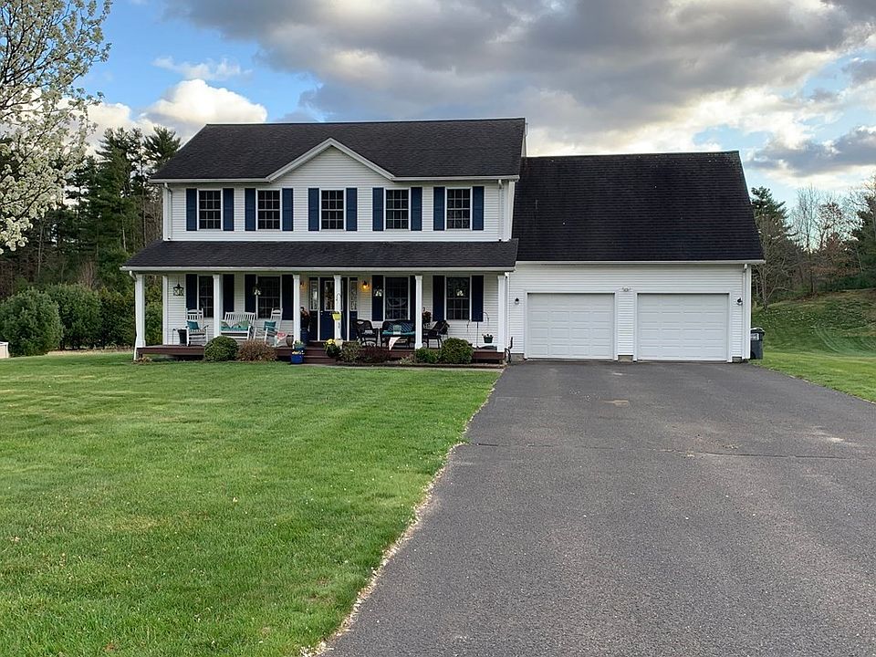 Run, don't walk to this beautifully remodeled colonial style home situated in an established Belchertown family neighborhood! This almost new home offers an inviting front porch. Many upgrades including hardwood and tile flooring throughout, granite countertops, stainless steel appliances, new central air unit and more. Expect to be impressed with the level backyard with hot tub, pool, large pool deck and stamped concrete patio perfect for entertaining! The 1st floor features a living room with pellet stove, open to the kitchen and dining area. Formal dining room and half bath with 1st floor laundry too. Upstairs, you will find the large master suite, two more bedrooms and full bath as well as finished bonus room. The heated lower level (basement) is completely finished, with a custom built-in bar and large area for games, or many other possibilities. You can host your family parties here! Two car garage is generous sized, and also has electric car plug-in. Showings begin on May 1st!