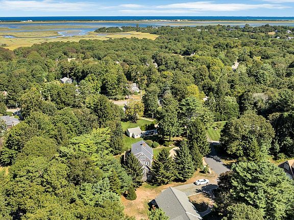 Welcome to this enchanting Cape style home, ideally situated in the village and just a short drive from both the beach and marina. This meticulously maintained 3-bedroom residence boasts a flexible layout, including the option to create a first-floor bedroom to suit your needs. The serene primary suite features a private deck, offering a perfect retreat for relaxation. Enjoy year-round comfort with natural gas heating, a cozy fireplace, and mini-split A/C units on both floors. The walkout lower level is designed for entertaining, complete with a stylish wet bar, an additional fireplace, and a well-appointed laundry room with a utility/workroom. Outside, the lush landscaping and efficient irrigation system keep the garden and rolling lawn vibrant and inviting. The property also includes a practical garden storage shed, a sunlit entry sitting area or mudroom, and a spacious 2-car attached garage. Unwind in the 3-season sunroom or on the private sundeck. A scenic path behind the home leads to tranquil wooded town land, combining coastal charm with modern convenience for the ideal living experience.
