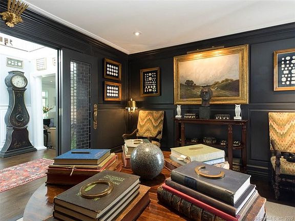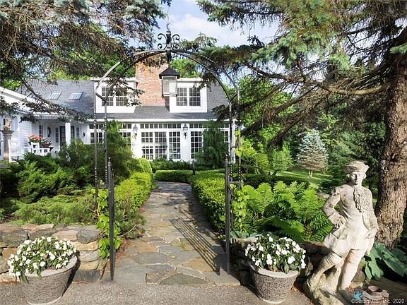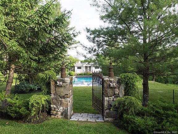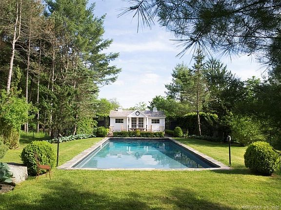 Private, elegant, and executed with extraordinary taste. The grand, custom-built 5,000+ square foot home is deeply set back from the road by a 500ft driveway and surrounded by protected land. It boasts a "hidden" Master Suite and main floor guest suite, each with marble baths; formal living room, formal dining room, and sunroom -- each with wood-burning fireplace. Exterior amenities feature an in-ground pool with newly refinished pool house/cabana; large post & beam barn; manicured gardens and specimen plantings all on nearly seven acres with a river running through it. Among the exterior highlights accenting the grounds, you'll find a bluestone patio, stone walls and walkways, iron gates, a 14th century well, and a long, hosta-hemmed driveway. The property is private without feeling isolated and conveniently located within walking distance to the town of Warren and local shops, minutes to Lake Waramaug, Warren private town beach and the shopping village of New Preston. 90 minutes from midtown NYC. EXCLUSIONS: Hanging Brass light in the den, hanging lantern in the master bath and crown fixture in the Master Bedroom.