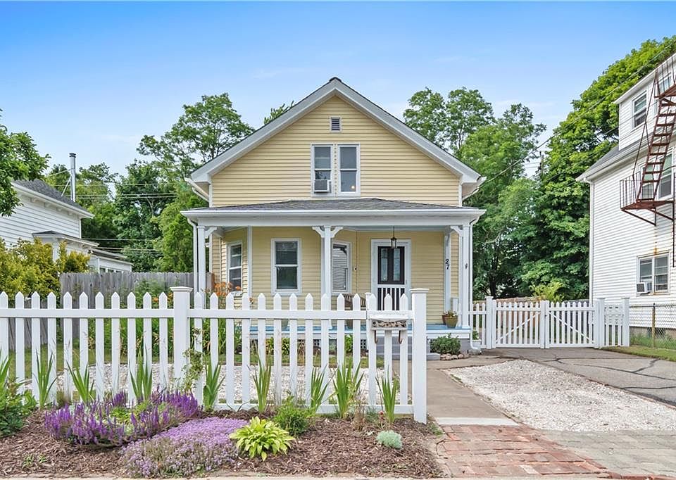 Welcome to a wonderful Victorian cottage close to Downtown Barrington! This light-filled home features character and charm throughout and modern amenities. Boasting an updated kitchen with stainless steel dishwasher and refrigerator and updated baths. The entry hallway is spacious and welcoming and ushers you into a beautiful space. Relax and unwind in the backyard on the patio or on the lovely front porch facing Tyler Point. Boasting hardwoods, replacement windows, easy to maintain vinyl siding, gas dryer and two-car detached garage. Save on energy costs with the solar panels! Walk to Tyler Point Grill, Barrington Town Center, Restaurants and shops in Warren, East Bay Bike Path and Barrington's young and popular splash pad!