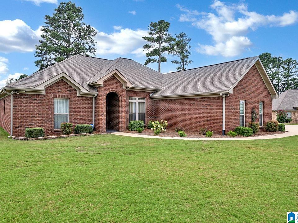 Nestled in the quiet Chapel Trace neighborhood, this 3BR/2BA brick home offers country living with modern comfort. Built in 2016, it features hardwood and tile floors in the main living areas and kitchen, with bamboo in bedrooms—no carpet throughout. The spacious split-bedroom layout includes a large living room, separate dining, and an eat-in kitchen. The primary suite boasts trey ceilings, a walk-in closet, soaking tub, and tile shower. Sitting on a large flat, fenced cul-de-sac lot with sprinkler system, this home is perfect for relaxing or entertaining. A 2-car garage, oversized driveway, and Thorsby schools complete the package. Well-maintained and move-in ready!