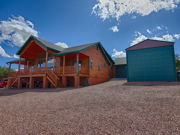 VIEWS - VIEWS - VIEWS - PRIVACY - TREMENDOUS PRIDE OF OWNERSHIP! This incredible home is completely fenced in on 5 acres w/ electronic gate (2) gated entrances. Backs State Land up to National Forest Land. 2 HUGE Garages/Barns 20 X 40' w/ 16' door and 18 X 24' w/ 16' door. PLUS a 4 car garage. Home is an open concept w/ large windows front and back. Gas fireplace with floor to ceiling stacked stone. Beautiful kitchen with lots of counter space with granite plus a beverage bar and wonderful storage. 3 bedrooms with 3 baths! Plus small office area. Large covered front and back decks with a separate fenced in back area for the pets or kids. 2 other large grassy areas for livestock/horses. One area set up to be an arena if desired. Home is by the Y in Northfork Ranch! See more Home was resided with easy care Smart Siding and had a new roof 3-4 years ago. Private Well Don't miss this incredibly well cared for home - only 10 minutes out of Show Low - easy access - GREAT roads! NOTE: Hot tub is no longer on the property. Imagine living in the White Mountains of Arizona where you have 4 beautiful seasons and where you can breathe in the fresh mountain air and enjoy the 40 lakes and over 600 miles of rivers and streams. In addition to the amazing fishing, this area has one of the most extensive trail systems in the south west for hiking, biking, horseback riding, quading and more. Sunrise Ski Resort is also just 60 minutes away with 3 beautiful mountains to ski, snow board or sled. If shopping is your interest, you will love the antique stores and the multitude of arts and craft shows that happen in the summer. The music festivals have something to fit everyone's enjoyment. Do you love to golf? There are 7 amazing golf courses, 3 that are public. The White Mountains, where this home/cabin is the best kept secret of Arizona! Come and explore and enhance your living! Pinetop-Lakeside was also voted 'Best Cabin Region in the U.S"... Embrace the MAGIC!