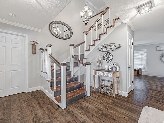 Welcome to the epitome of luxury living! This stunning updated farmhouse-style estate boasts an array of features that will leave you awe-inspired. As you walk through the front door, you'll be immediately drawn to the elegant marble countertops, and quartz kitchen island that sets the tone for the entire house. The exquisite marble back splash creates a captivating visual appeal, while the one-year-old luxury vinyl flooring throughout adds to the overall charm and warmth of the home. You'll be delighted to find five spacious bedrooms, providing ample space for all your family's needs. The house is situated on an expansive seven-acre lot, offering a tranquil and private retreat. The new windows and one-year-old roof ensure that the home is energy-efficient and well-maintained. The wood chute and real wood fireplace provide the perfect ambiance for cozy winter nights, while the porcelain farmhouse sink adds to the home's rustic charm. This house is truly a dream come true, with its perfect blend of elegance, style, and functionality. But wait, there's more! This spectacular house also features a wrap-around porch that is perfect for enjoying the beautiful outdoors.