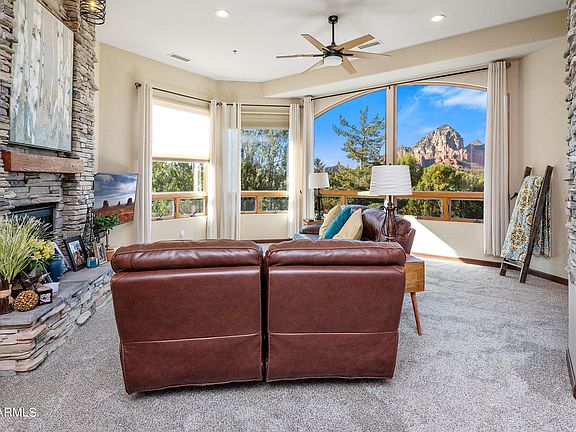 Elevated Red Rock Views! Dramatic Sunsets! All on a quiet cul-de-sac in a premier gated subdivision. Perfect location with easy access to everything Sedona. This modern home lives comfortably on one level with luxurious upgrades and amenities. Great floor plan with plenty of gathering and entertaining space, with massive red rocks views and a floor-to-ceiling stack stone fireplace as the centerpiece. Enter your master suite and take a relaxing breath as you are welcomed by the inviting comforts of home. Surround yourself with light from the large windows, situated perfectly to provide red rock views every morning. Also featured is a private fireplace that is sure to establish the perfect ambience every evening. This a home that needs to be appreciated in person.. More Upgrades Below. Recent owner upgrades in the last 12 months