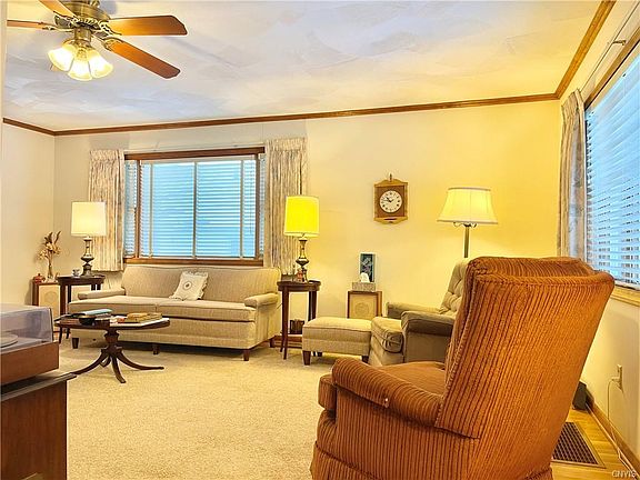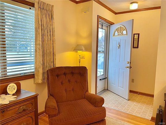 CUTE AS A BUTTON! This sweet and inviting ranch is a must-see! You will find this home nestled on a lot with beautiful, tidy landscaping and a deep backyard. Enjoy your privacy with mature trees and no neighbors behind. Step inside and find just the right spot for your shoes and coat in the foyer before entering into the generous living room with plenty of space for all of your furniture and GLEAMING hardwoods. Two huge windows allow a TON of natural light making this living area feel open and bright! The hallway leads you to a full bathroom with tub and two perfectly sized bedrooms with ample closet space. Those beautiful hardwoods run throughout making these bedrooms nice and clean and MOVE-IN READY! Gather around the table in front of another large window with a pretty view in your EAT-IN kitchen. Plenty of workspace for preparing meals, a nice pantry and lots of cabinets so everything has a place! As an added bonus, there is a large finished area in the basement with a WALK-OUT to the backyard. Ideal set up for a rec room, "man cave", or home gym. Lots of possibilities here! Showings begin Friday 1/22 at 10:00am. Negotiations begin Monday 1/25 at 6:00pm.