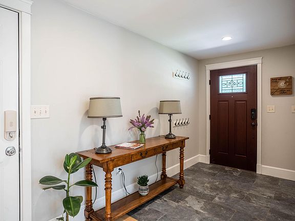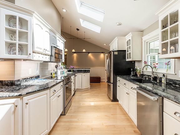 Move right in to this beautiful ranch in one of Cumberland Center's most sought after neighborhoods. This 4 bedroom, 2.5 bath home features an airy primary ensuite with walk-in closet and french doors to your back deck overlooking a true oasis. A sun-filled kitchen with skylights and high ceilings is a real showstopper. Step down into a bright living room that also leads to the gorgeous backyard and stone patio. The finished space in the lower level allows for a great bonus living area or game room. The private, beautifully gardened backyard is perfect for entertaining, with two decks and an expansive patio area. All of your storage needs will be met with the oversized two car garage. Within walking distance to Cumberland schools and Val Halla Golf and Recreation Center and just a short drive to downtown Portland!