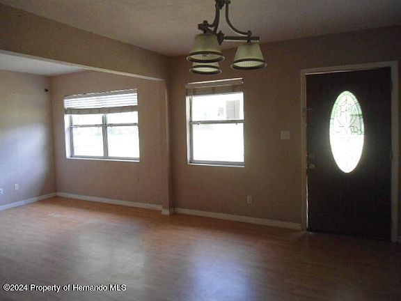 Cash only. Three bedroom, one bath home on .69 of an acre lot, located near the historic city of Brooksville. This home features a living room, kitchen with breakfast bar, bonus room, screened-in lanai, and wood laminate flooring throughout the house.