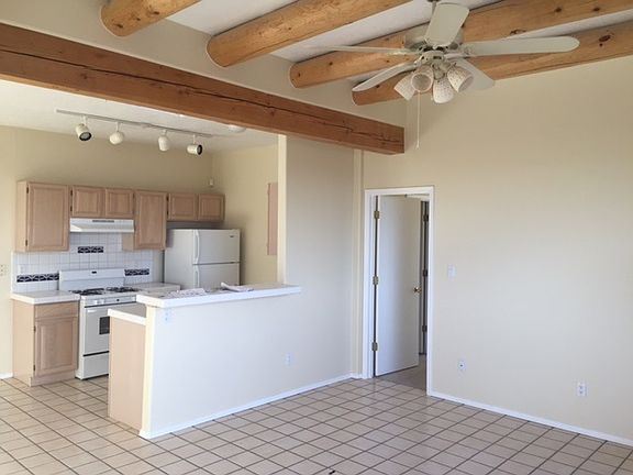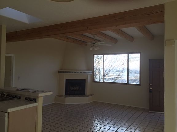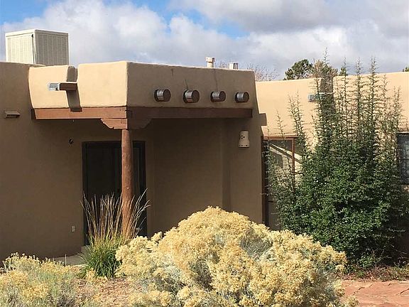 Bright home, skylights with lovely entry courtyard, walled front and back court yards and easy access in and out of the subdivision. This home features new high efficiency boiler and tankless hot water, new appliances, new STO stucco and paint, newly sealed roof, a kiva wood burning fireplace, vigas, and new tile throughout the house. Complete kitchen and bathroom renovation 2018. Solar added in 2019 - live with free self generated electricity! Landscaping and outdoor living renovations in 2020 include back courtyard gas fire pit and large, deep, 500 sq ft portal with lights and fans, in courtyard car storage and new irrigation system. Simple living with lots of storage in two bay garage with third full size bay as secured interior storage.