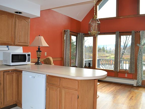 Absolutely adorable year round chalet style home with dramatic mountain views and the meandering Saranac River peppered with an abundance of every type of wildlife! Second floor is loft BR with full bath, 1-2 bedroom on first level and one full bath. Perfect retirement , 1st time home of vacation home! New two stall garage, property is in great condition! Miles of paddling right out your door in the Spring, Moose Pond just a few miles away offers a hiking, XC ski, snowshoe trial surrounding the pond, great fishing and ares to explore! Located on nicely maintained private road, approx 400 feet from main road.