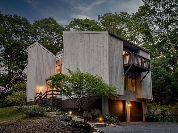 Not to be missed dramatic Contemporary! May 2023 major tree removal makes this even more open & brighter! Set down a quiet cul de sac this home has major updates by current owner - kitchen, baths, heating. New hardwood floor finishing & new carpeting. Granite counters and stainless appliances. Two bedrooms on the first floor with easy access to one half and a separate full bath. The second level offers two additional bedrooms, including primary with balcony, large bath, double sink, walk-in shower. The second floor hallway with overlooks living room & fourth guest room with built ins. First floor living room has cathedral ceilings, raised hearth & gas fireplace insert. Dining area is just off the kitchen with oak plank flooring & sliders to deck to enjoy the yard. Four season sunroom with skylights (not inc. in sf). Lower level bonus space & mudroom with built ins. The house has central air & supplemental wall unit (2022) in primary suite. Close to Sherborn's Barber trail system.