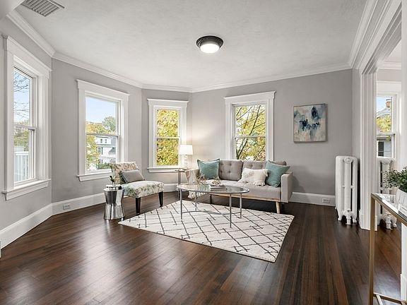 "So I wait for you like a lonely house till you see me and come to live in me. Till then my windows ache." Belmont Second and third floor condo. Renovated in side and out showcases pride of ownership. Stairs to the second floor leads to a small foyer. From here one can see the living room with lots of built-ins and door to outside deck and the dining area with built-in china cabinet including the classic pass through from kitchen. Architecture combines high ceilings and oversized windows which allows natural light to flow into the rooms creating and open and airy feeling. Chef's kitchen with stainless appliances and island provides a fun place to create. Half bath provides a convince for this floor. Off kitchen is a screened porch which could be used as a quiet space for morning coffee. Third floor has a bedroom with half bath and a master bedroom with large spa bathroom. Nice closet space . Close proximity to Commuter Rail, and Harvard bus line.