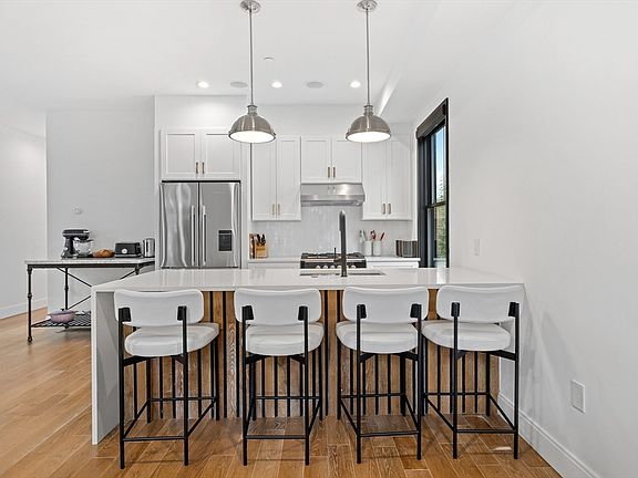 Completed in 2021, 27 Cutter Street, Unit 27A is a stunning 3-bedroom, 2.5-bath home with a private entrance that spans 2,108 square feet over two levels. The first floor has hardwood floors and an open-concept layout seamlessly connecting the living, dining, and kitchen areas. The kitchen features Fisher and Paykel appliances, ample cabinetry, and a custom pantry down the hall. Also on this floor is a half bath and guest bedroom with an ensuite bath. Stairs descend to a second living room with high ceilings, a large primary suite, and a third bedroom, all with custom closets. Other features include wired Pyle surround sound, in-unit washer and dryer, 1 garage parking, 2 zones of heating and cooling, exclusive use of the front porch, a small private patio off of family room, and a common outdoor patio with a grill. Conveniently located off Broadway with quick access to I-93, Sullivan Square and East Somerville MBTA stations, Assembly Row, and downtown Boston.