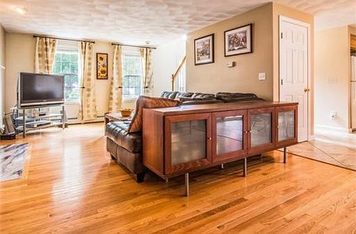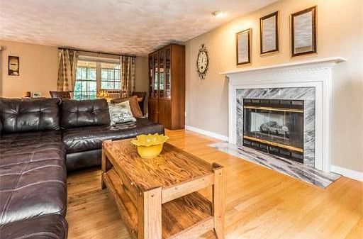 Spacious Colonial in great neighborhood location on cul-de-sac abutting school recreational fields. Features include front to back family room with fireplace and hardwood floors, eat-in kitchen with sliders opening to screened-in deck and private flat back yard, formal dining room, updated bathrooms. Close to schools, shopping, rte 95 and commuter rail.
