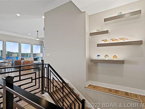 Fresh, Modern and miles of main channel views in either direction! Be ready to start enjoying the lake this fall! Relax in your heated pool or spa while the BBQ is roasting in your poolside, outdoor kitchen. You won't miss a moment of the big game with two poolside tv's! All of this is possible while enjoying a huge and inspirational view of the lake. When it is time to venture indoors, enjoy a spot at the bar or a game of pool while the fire crackles in the gorgeous, modern gas fireplace. All bedrooms are en-suite and the fabulous bunkroom is perfect for larger families. One level living features a generous main suite with a fabulous bath and walk in closet. Laundry rooms on both levels of the home. Nothing has been overlooked in this very gently used home that feels like brand new construction.