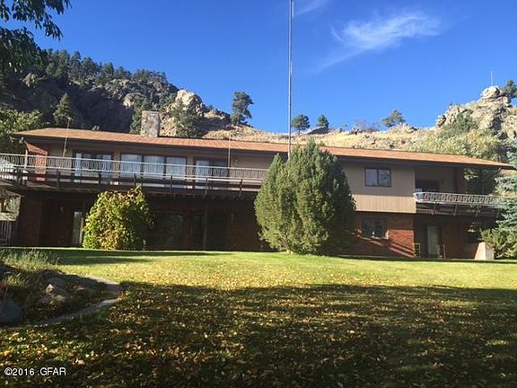 Space, space, space. Six bedrooms & 5 bathrooms in a brick two-level home surrounded by lush landscaping & an iron fence. Perched on 10.47 acres overlooking the Missouri River, close to Craig & award-winning fly fishing. Find a 2-car garage AND an enormous shop with a lift to the second floor & 1 bath. Soaring ceilings upstairs & custom iron spiral staircase which leads to the recreation room to