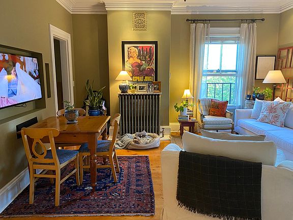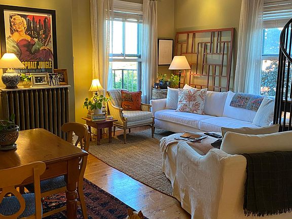You will love this updated 2 bedroom condo with off street parking and private laundry and bonus storage/guest space. This two floor condo features huge master bedroom area, skylights, exposed brick, built-ins, over-sized tile shower & surround sound. Separate laundry area with storage all on the 3rd floor. Heat and hot water included along with off-street parking. Owner pays for heat & hot water
