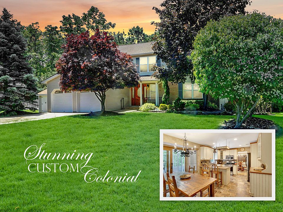 Luxury living, maintenance-free backyard, and stunning detail both inside and out in this custom-built and designed Colonial convenient to Routes 9, 195 and commuter bus to NYC. First floor living room room with European built-in shelving and seating, formal dining room has gorgeous detail. Gourmet kitchen with breakfast room, granite counters and newer stainless steel appliances. Family room off the kitchen has a custom limestone wood-burning fireplace and imported wood beam flooring from Vermont. Four season room with terracotta flooring has heat and air providing more space for entertaining! As if the family room and sun-room weren't enough, a fully finished basement with full bath. Stunning master bedroom with elegant private bath and walk-closet has California-style built ins!