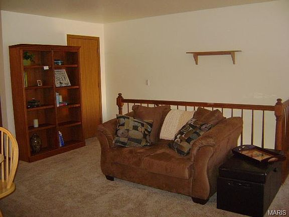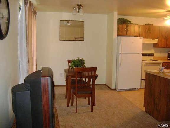 Welcome home to this comfortable 2nd floor unit just moments away from Main Street O'Fallon. Walk upstairs to a light-filled open floorplan boasting a Living/dining area and HUGE kitchen with a sprawling breakfast bar and lots of cabinet space. Fridge stays for your convenience. Down the hall you'll find a spacious master bedroom which has a walk-in closet and private updated bathroom. The 2nd bedroom has a large closet and access to a nice hall bathroom. Full-sized washer and dryer are in a hall closet and stay with the unit! Relax on a large covered balcony and walk across to Civic Park! One parking space is assigned to the unit, and there is also plenty of guest parking.