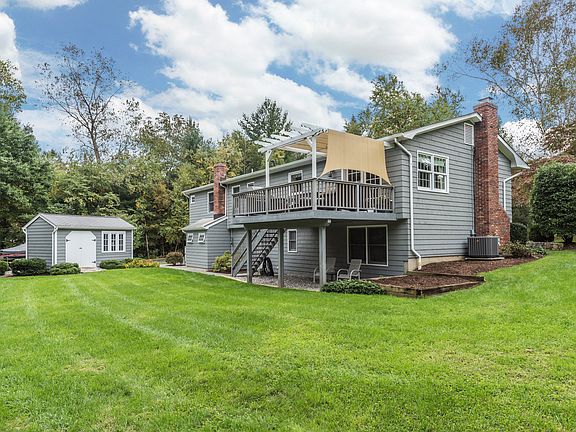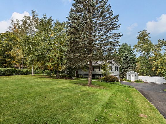 Welcome to this spectacular oversized and customized Raised Ranch home in desirable area. Not your ordinary Raised Ranch this one must be seen to be appreciated, completely remodeled from top to bottom with quality construction. Special attention to details throughout including brand new customized eat in kitchen with Quartzite counters and center island, Blanc white cabinets, tile decorative backsplash and flooring, stainless steel high end appliances including double ovens. Spacious open floor plan living and dining rooms with brand new wall to wall plush carpeting over hardwood flooring, crown molding throughout and walk-out to private tranquil and serene deck with pergola. Master bedroom with double walk-in closets, renovated master bath with many special features including granite counters, double sinks, wainscoting, tiled stall shower with decorative wall sconces. Additional guest bedrooms boasts hardwood floors, ample closet space & hallway full bathroom with granite counters and custom tile. Lower level is host to a capacious family room with beautiful stone ceiling to floor wood burning fireplace, separate office/den and lovely laundry room with walk out to level fenced in back yard. Two car oversized garage, Shed, exterior lighting, efficient Hydro-air zoned heat and central air conditioning. Magnificent custom stone walls, gardens galore, flagstone sidewalk and entrance, Luxurious sprawling lawn in superb New Milford location close to town yet private & Peaceful.