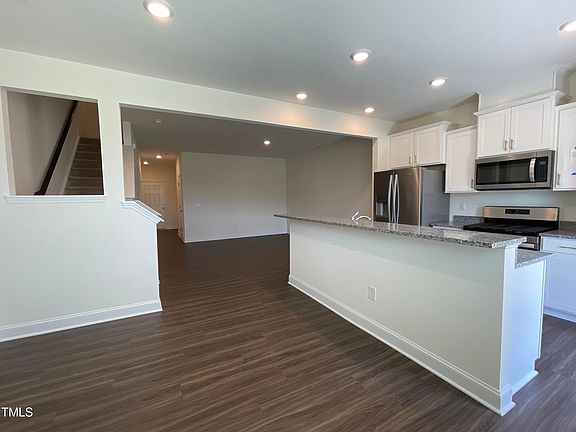 Beautiful townhome in a desirable neighborhood, right across from the upcoming Waterfront district. 3 spacious bedrooms, 2.5 bathrooms, open floor plan, 1 car garage and much more. Near dining and shopping. Short drive from anywhere in the Triangle. Furnished photos are of a model for illustration purposes only. Home to be completed early June. Ask about our move in special.