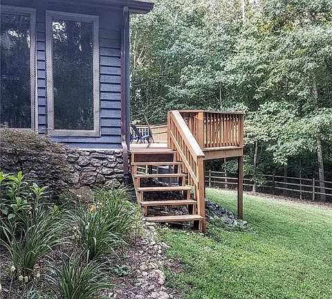Motivated Seller. Tucked in a beautiful setting with mature trees on almost 1 acre. Quiet, private retreat with both a mountain cabin & country feel! Two spacious decks for hosting summertime get-togethers. Fenced yard, perfect for pets. 2018-wood exterior painted, decks restained. HVAC replaced 6/2015. Well pump replaced 1/2014; septic pumped 5/2015 Lots of space to spread out with over 1900 sq ft! Walk-in shower + whirlpool tub in MA BA. Split BR plan. Great kitchen for whipping up a meal and good conversation, too. Less than $100/sf! Washer/dryer, outdoor gas grill, and window treatments remain. There's so much to love here! Easy to call it HOME! 10 min to DT AVL, 15 to Weaverville. County taxes only. Has a peek of winter mountain views. Fridge & sink water filters. Water softener, too. Come see it! Please, NO drive-bys. Mfcd Dblwide w/addition on permanent foundation.