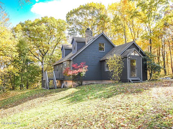 Recently renovated cape cod style home up a winding driveway to a secluded space in the woods. Open layout on first floor with kitchen, family room, large living room with pellet stove, two bedrooms and a full bathroom. Upstairs 2 more large bedrooms and another full bathroom with soaking tub. New flooring in first floor and freshly painted with new trim. Bathrooms had a makeover as well. The full basement has high ceilings and is very dry so has potential to be finished space as well. Energy efficient Buderus heating system and full water filtration system in place. Freshly painted Wood siding and Outside there is a shed, a carport, Garden space, fire pit and freshly painted deck. New cable line run so hi speed internet, plus smart security system in place with camera included.