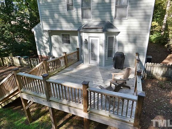 Isn't this what you want? Cozy, comfortable 3 Bedroom, 2.5 baths in popular Woodcroft! Features include built-in bookcases, bay window, crown & chair moulding, ceiling fans. Kitchen has gas stove & solid-surface counters. Wooded, cul-de-sac lot with a large deck, fenced yard and storage shed. Home Warranty included! Just a short walk to trails, Clubhouse (separate membership). Convenient to Duke, UNC, I-40, Southpoint and more.
