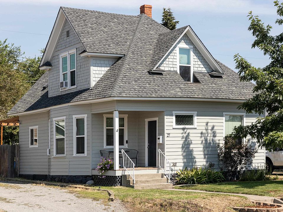 Darling North Spokane 4 bedroom/1.5 bath home located near shopping, schools, parks, and public transportation. The covered front porch welcomes you into this character-filled home with formal living room off the entry and dining room with beautiful built-ins. A spacious bedroom connecting to the main bath, and modern kitchen complete the first floor. The 3 remaining bedrooms and half-bath are located on the second floor. New interior doors, paint, and laminate floors throughout. Fresh exterior paint, newer siding and energy efficient vinyl windows enhance curb-appeal, while a large deck with pergola and fully fenced backyard make this home perfect for outdoor entertaining. The backyard also has a brand new storage shed for all of your yard tools, etc. Don't miss out on this fabulous home. Schedule your private tour today!