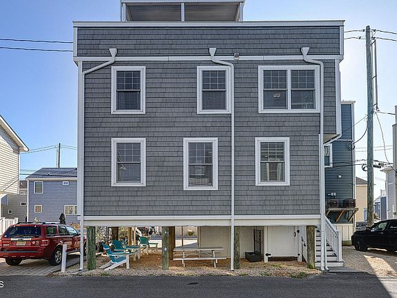 Stunning 4 bedroom, 3 full bath custom home, just a short distance to the beach!This beautifully crafted home offers prime beach block living. Granite eat in kitchen with SS appliances and seating for 6 at the breakfast bar. The 1st floor boasts a versatile bedroom/office/den and a full bath, as well as stackable washer and dryer. Upstairs, the primary suite includes a walk in closet and full bath, along with 2 additional bedrooms and another full bath. Enjoy breathtaking ocean and bay views from the rooftop deck, perfect for outdoor entertaining. The ground level offers 2 car wide driveway, an outdoor shower, and additional space for al fresco dining and relaxing. Don't miss this incredible opportunity to own at the Jersey Shore!