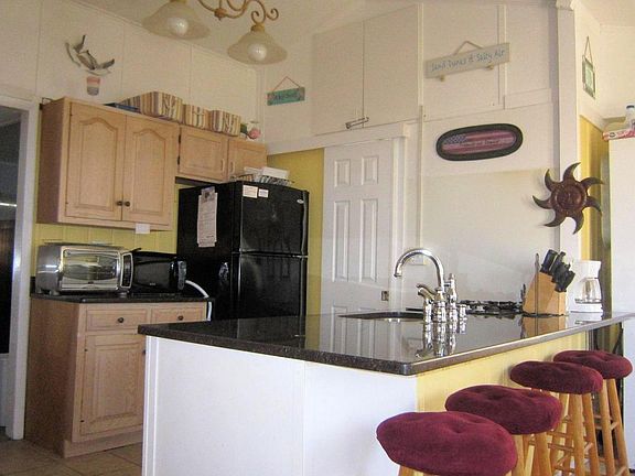 Ocean block only six houses from beach. Open floor plan, granite kitchen counters, bay window, ceramic tile floors, washer/dryer, dishwasher. Fully furnished Leased land for great tax write-off.