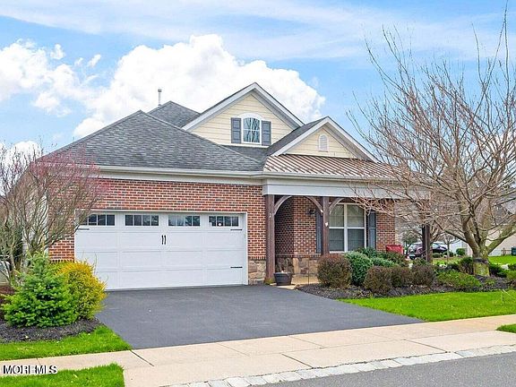 Beautiful Lassiter Style Ranch home in desirable Equestra at Colts Neck over 55 community. This neighborhood offers the perfect blend of convenience and comfort. This charming ranch-style home features a spacious 2 car garage, 3 bedrooms, 2 full baths. Primary bedroom is large and bright and has a large closet and jacuzzi in the attached bathroom. The open and bright layout is ideal for entertaining guests or simply enjoying a cozy night in. The back patio has remote controlled fans above that can cool you off on hot evenings while overlooking the serene landscaping. Prepare meals in the eat in kitchen with plenty of natural light. Situated on a corner lot, this property boasts central air, FHA gas heat and a full house generator. The amazing very active association has so much to offer...inground indoor pool that can be used all winter long, inground outdoor pool during summer months, tennis court, pickleball court, sauna, gym, walking paths, and a zen garden and so many different activities to attend all year long. Over 55 living at its best!!!