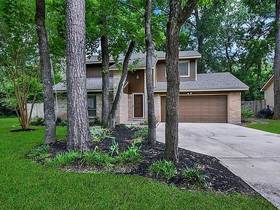 Wonderful family home in the desirable Village of Panther Creek located at the end of cul-de-sac & nestled in the heart of The Woodlands w/close shopping & walking distance to Glen Loch Elementary School, McCullough Jr. High School & Creekwood Park. This charming home features 4 bedrooms up; 2.5 baths, slatestone foyer, high ceilings, fresh neutral paint colors & abundant windows provide natural light throughout this open floor plan. The kitchen is light & bright w/Silestone counters, breakfast bar & white cabinets w/plenty of space, upgraded dishwasher & opens to the sunny breakfast room w/french doors overlooking the backyard; Spacious family room w/a cozy brick fireplace & Dining. Large & private master bedroom w/updated master bath w/fabulous Elfa His & Her Closets!!! Fenced backyard w/sprinkler system, Huge wood deck surrounded by beautiful mature trees & no rear neighbors. This home shines inside and out...HURRY!