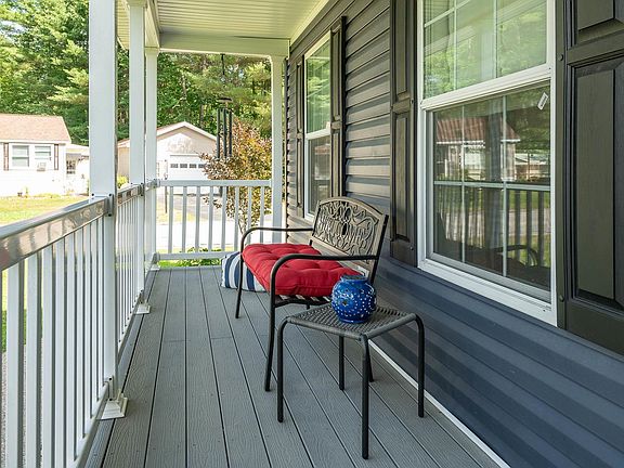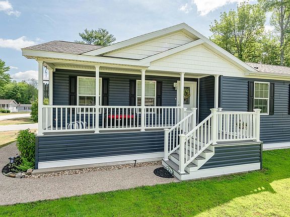 Welcome to 27 Eagle Drive, an impeccably crafted home in Tara Estates, Rochester, NH. A sense of tranquility and exclusivity surrounds you from the moment you arrive. Built in 2020 as a model house, this residence offers privacy and a charming view of the community's entrance from the deck and farmer's porch. Some notable features include luxurious 10-foot ceilings, a master ensuite featuring grab bars for safety, additional kitchen cabinetry, and a generous walk-in pantry that amplifies storage and functionality. A spacious living room with built-in shelving and an entertainment center adds character and practical storage solutions. The spacious two-car garage offers ample room for car enthusiasts or those requiring extra storage. Tara Estates is designed for adults 55 and older, offering various amenities tailored to sweeten life. Whether you enjoy social gatherings and recreational activities or simply desire a peaceful retreat, this community has something to offer everyone. If you're looking for a home that seamlessly combines luxury, functionality, and exclusivity within a vibrant 55+ community, look no further than 27 Eagle Drive. Schedule your private showing today and discover firsthand the exceptional lifestyle this property offers. *Park Approval Required*
