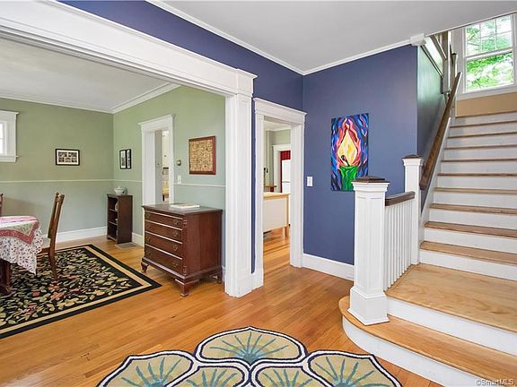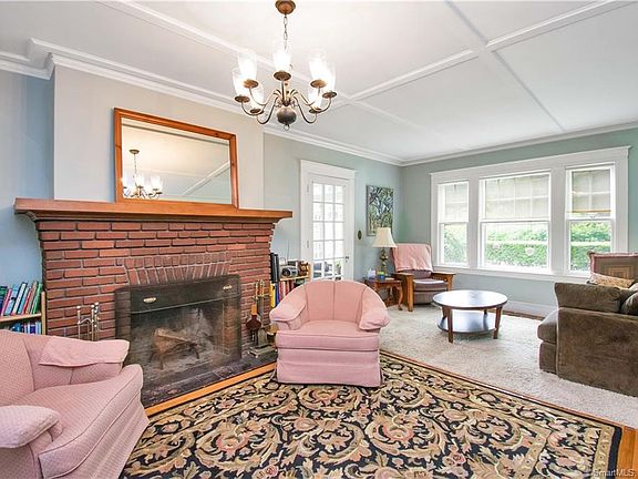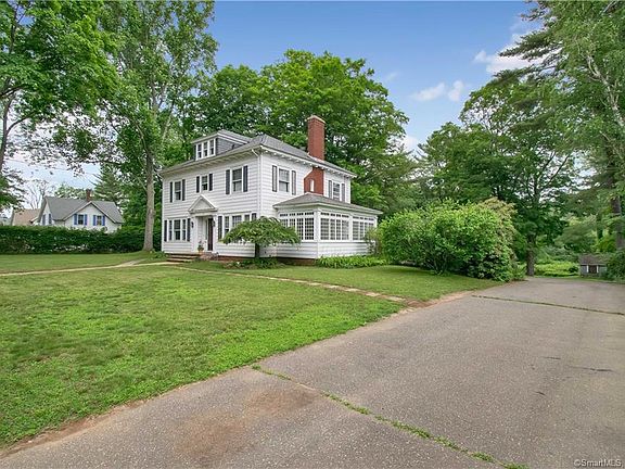 Beautiful 4-6 bedroom Colonial with charm, CAIR and nearly an acre!! The current owners put in a new heating system, water heater, electrical panel with generator hook up and central air. Interior recently painted and refinished hardwood floors throughout the home. Step into the large foyer and immediately you will notice the coffered ceiling in the front to back living room with a brick fireplace. Relax in the sunroom with another fireplace w/insert. Formal dining room with built-ins right off the kitchen. Full bath and a laundry room/mudroom completes the first floor. Upstairs you will find a spacious hallway with 4 good sized bedrooms and a full bath with double sinks. One bedroom has a balcony overlooking the backyard. Continue up to the 3rd floor for an additional 2 bedrooms and a 1/2 bath waiting for you to redo. In the walk out basement, you will find your game room/man cave and behind that a workshop area. Outside offers a nice patio that overlooks the private backyard.