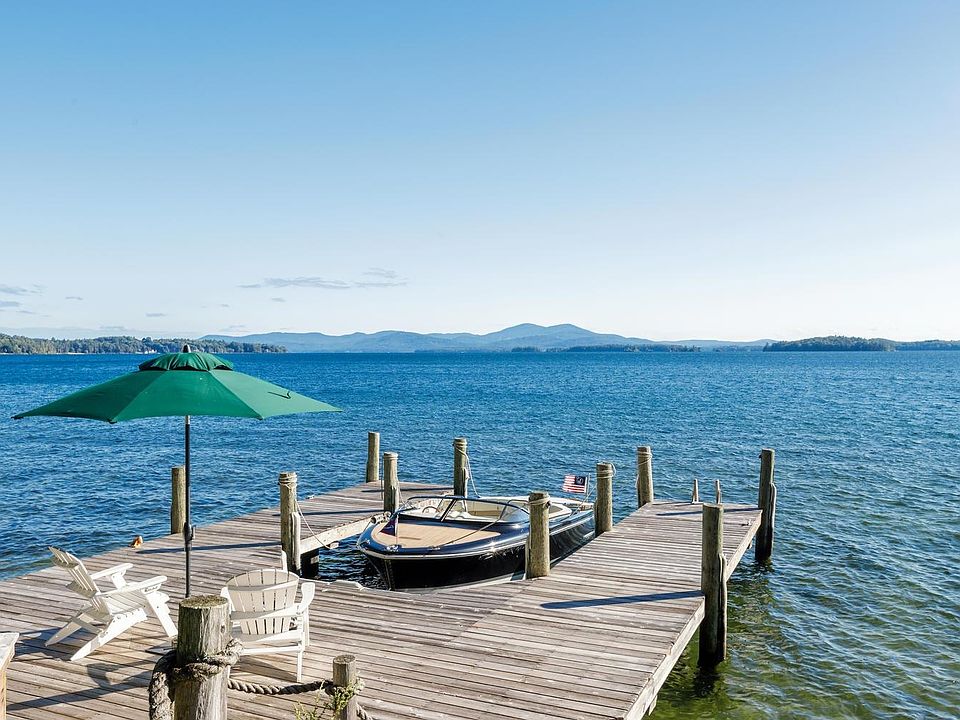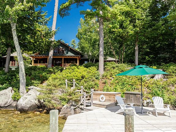 Forest Lodge, only the 3rd time this property has been available in over 100 years. The main house was built new in 2004 using the original design & many of the architectural features from the original 1912 lakefront lodge. Nestled perfectly into the surrounding landscape, this exceptional home is situated on a large 1.12-acre lot with 164 ft of pristine shorefront in a prime water quality area, with Southwesterly exposure and panoramic lake and mountain views. The docking features are exceptional with a permanent, U-shaped dock that provides expansive docking for watercraft and water activities. The main house is positioned in a courtyard setting with pillared entry laced w/ stone walls & mature landscaping. The main floor includes a great room with original fireplace and soaring ceilings that feature hemlock beams & Douglas Fir ceilings & walls, large eat-in gourmet kitchen with open dining area and beautiful screened porch. The main floor, primary bedroom suite is private and serene with lovely lake views. This property also includes a private, air-conditioned, 2-bedroom guest cottage & a 4+ bay garage with adjoining workshop and storage area. The carriage house has a full kitchen, living room with fireplace, 2 bedrooms, 1.5 baths, separate laundry and a massive garage that features radiant in-floor heating. Property is being sold furnished. Exclusion and stagers list available upon request. Delayed showings begin Sunday, 1/29 at open house 11-1:30, no appointment needed.