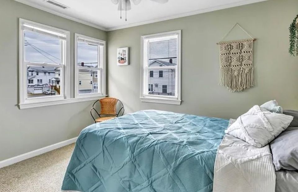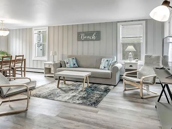 Fully furnished beach house with your very own backyard beach bar! This home has 1400 sq feet of living space with 3 bedrooms and1.5 baths. This house is 6 back from the water. There are water views in both the bedroom & enclosed 3 season front porch. Just a one-minute timed walk to the private beach and access to 5 beach heads for fishing. A, beach cart and 6 beach chairs for your use are included in your stay to make a trip to the beach an enjoyable one. Bring your favorite cocktails to enjoy the beautiful sunset! After the sun goes down head back to the beach house to enjoy an evening around the fire pit. Just down the road is a beautiful park for the little ones to enjoy the huge playscape and swings. Play some basketball on the court, play some pickle ball on 1 of the 4 pickle ball courts, or hit some balls at baseball field. This beach home is conveniently located to grocery stores, Westfield shopping mall, great restaurants, and golfing all just 10 minutes away. Fully appointed kitchen: -Pots, pans, dishes, utensils, salt and pepper -Dishwasher, oven/stove, refrigerator, washer, dryer, coffee maker, Keurig coffee maker, microwave, and toaster. Living room has ample seating with a couch that can be converted to additional sleeping space and a smart T.V for you to connect with all your entertainment accounts. Dining area with a table and seating for 6. 1/2 bath main level Full bath second level Guest room 1- Queen bed, work desk, and a large closet Guest room 2- full size bed and a large closet Guest room 3- 2 twin size beds and a large closet Backyard deck with table for outside dining Gas Grill firepit Short term, fully furnished rental, one month minimum off street parking