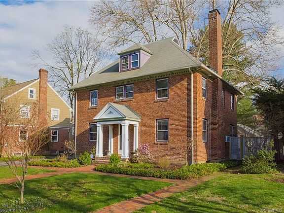 Oozing with charm and just steps to LaSalle Road in West Hartford Center! Just open your front door and enjoy life in the heart of West Hartford Center! This stately brick Colonial near the intersection of Ellsworth & LaSalle Road features beautiful woodwork, French doors, arched doorways, high ceilings & period details. The formal living room with wood burning fireplace opens to the sun-room and the generous formal dining room leads to the white kitchen with new granite counters and stainless appliances. From there you can access the lovely back yard and patio via the mudroom area. Upstairs you will find four spacious bedrooms on the second floor that share two full baths. Up another flight lies the professionally finished and ultra-versatile third floor. Use it as a 5th bedroom, home office, guest quarters, home gym, art studio or master suite or whatever inspires you. The fully fenced backyard and patio area is perfect for BBQs and cocktails by the fire-pit before taking a stroll down LaSalle. Fresh paint throughout, natural gas heat, newer H20 heater and right in the heart of it all, come see this fantastic home today!