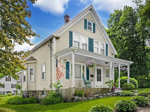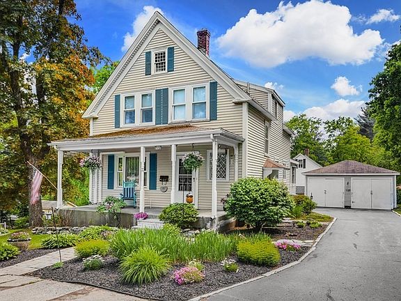 Meticulous and bright 3 bedroom, 1.5 bath vintage colonial with many sensible updates and improvements over the years, including kitchen with center island and an abundance of cabinetry, bathrooms, heating & cooling, vinyl siding, windows, and sunny 4-season room addition with vaulted ceiling and windows on 3 sides. This property also features beautiful wood floors throughout, fabulous covered front porch, a spacious 2 car detached garage and pretty perennial gardens all around! Just steps to Coolidge Park and convenient to Historic downtown Maynard -- home to many shops, restaurants, galleries, and a movie theater!