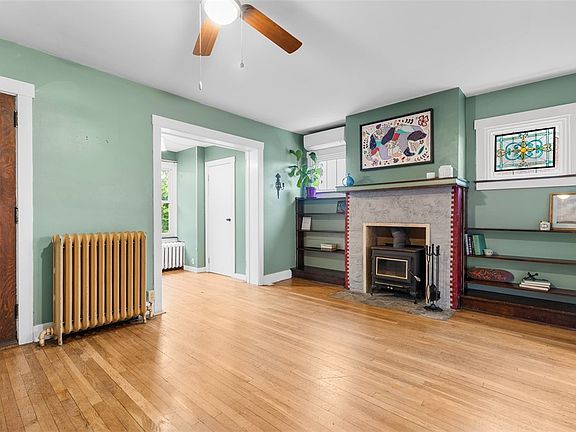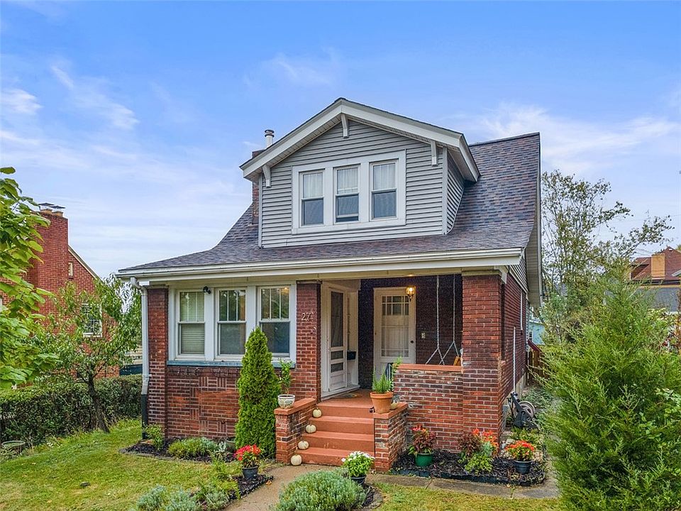This brick charmer welcomes you with a covered front porch complete with swing. Inside discover charming details blending with modern comfort throughout. The cozy living room features built-ins & a fireplace, perfect for relaxing fall evenings. The spacious dining room & updated powder room are ideal for entertaining. You’ll love the bright breakfast nook with butcher block island-from there back door opens to a fully fenced yard- easy access for pets! You’ll feel like you’re in a secret garden with a pergola & firepit setting the stage for gatherings with friends. Plenty of space remains for play or gardening, plus easy garage access! Upstairs find generous bedrooms, including a custom walk in closet on the primary, & updated full bath. Partly finished basement with room for an office, gym, workshop- name it! Plus large storage rooms & laundry area. AND a newer roof for peace of mind. Walkable to parks, coffee shop, school, & shopping. Don’t miss the chance to make this charmer yours!